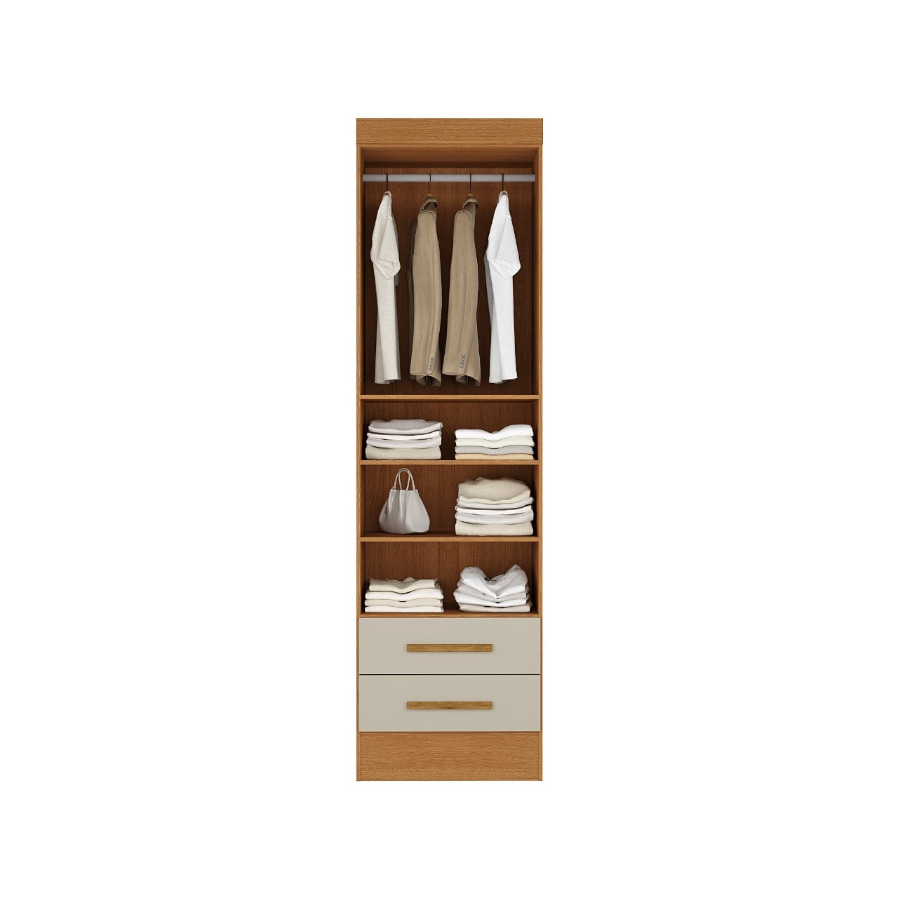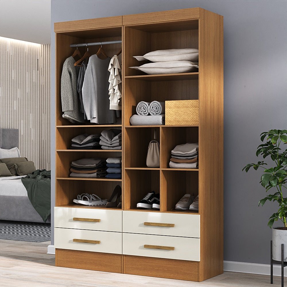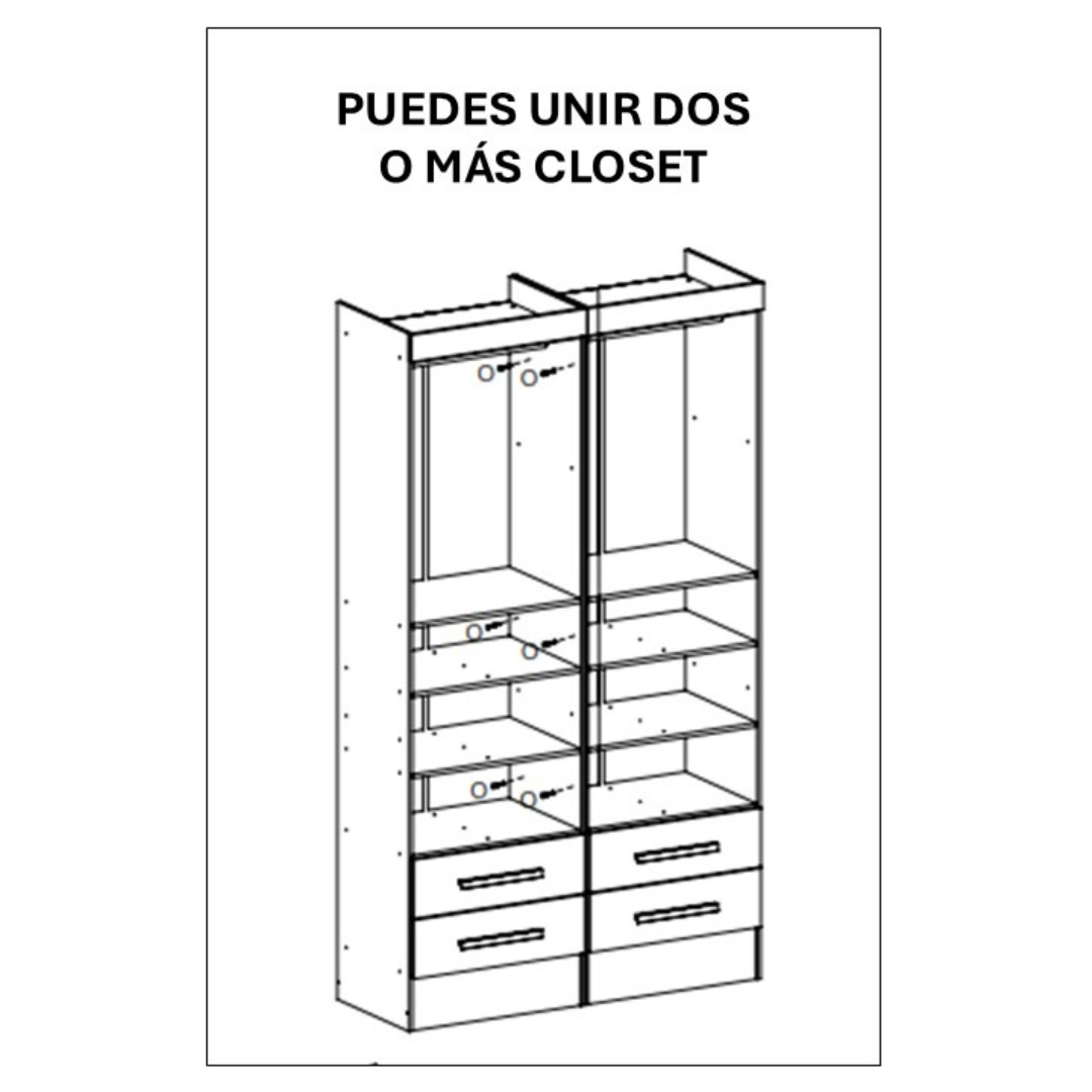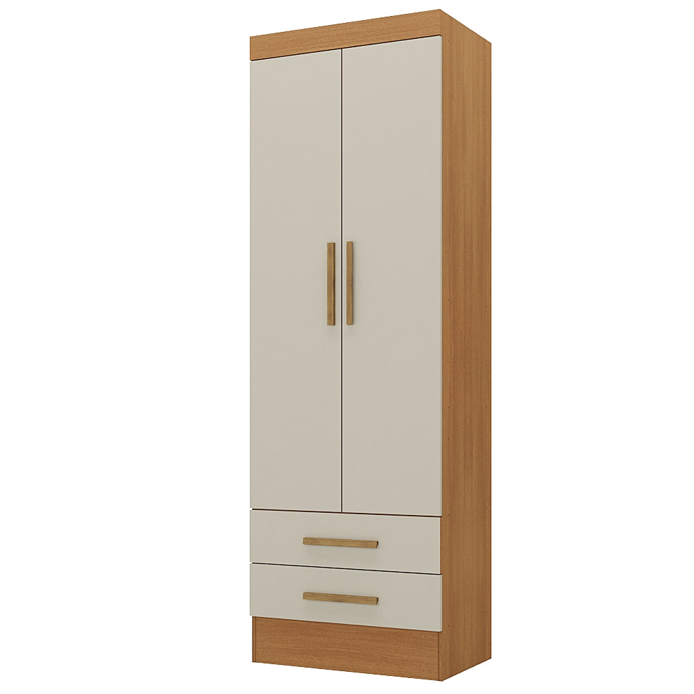 Funcional y decorativo closet en 2 colores: canela y blanco off white. Cuenta con 2 puertas y 2 cajones. Tienes 4 opciones de armado en el interior, de manera que puedas adaptarlo a tus necesidades.