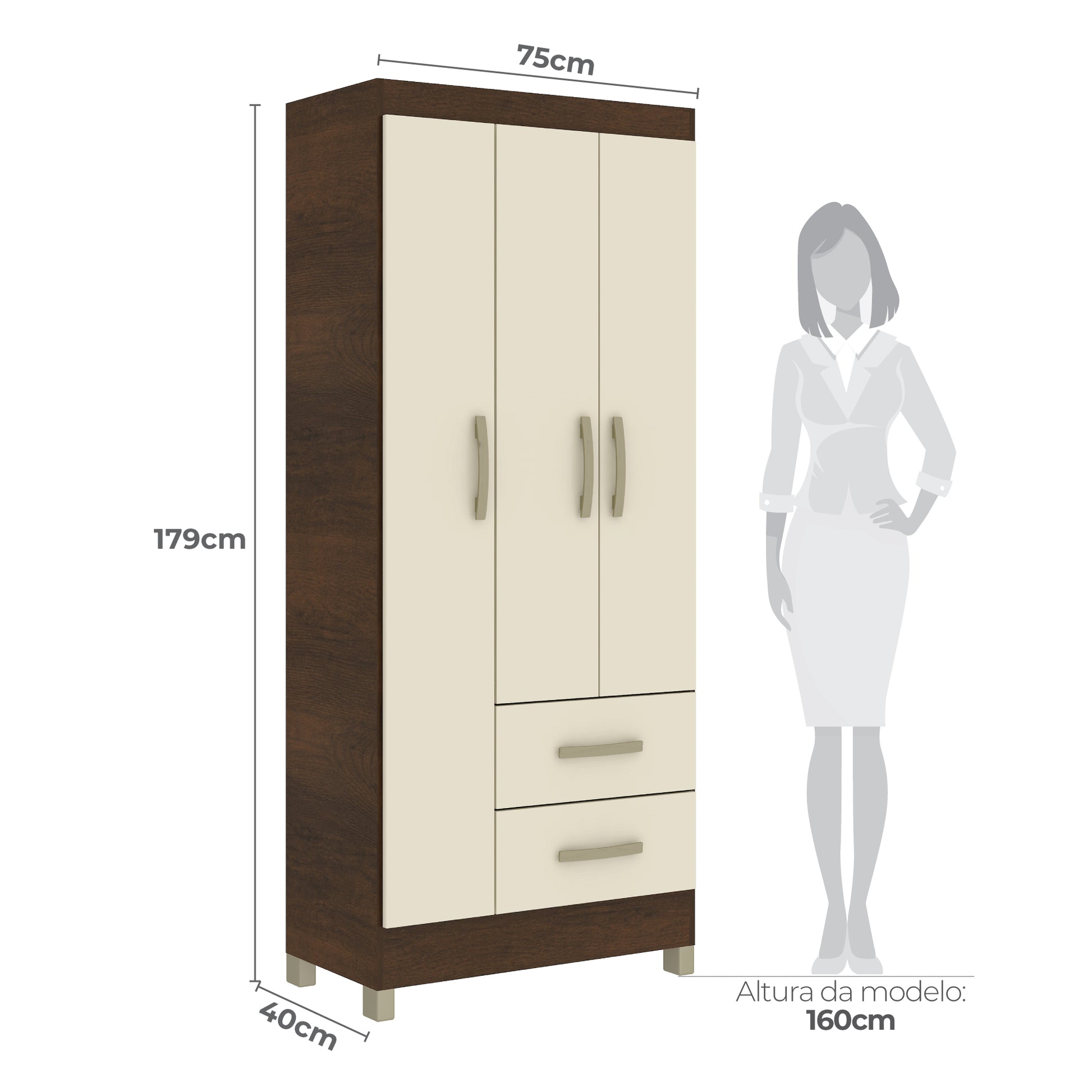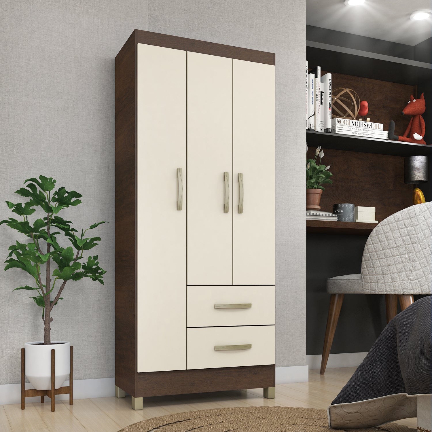 Funcional y decorativo closet de colores rústico y champagne. Cuenta con 3 puertas y 2 cajones. Aprovecha los nichos que hay en su interior para mantener tus pertenencias ordenadas.