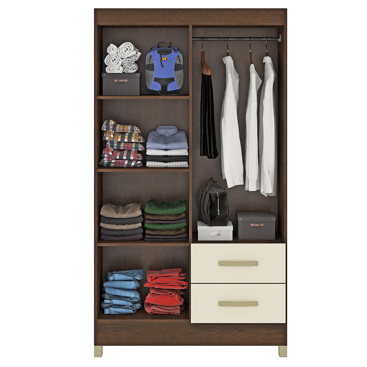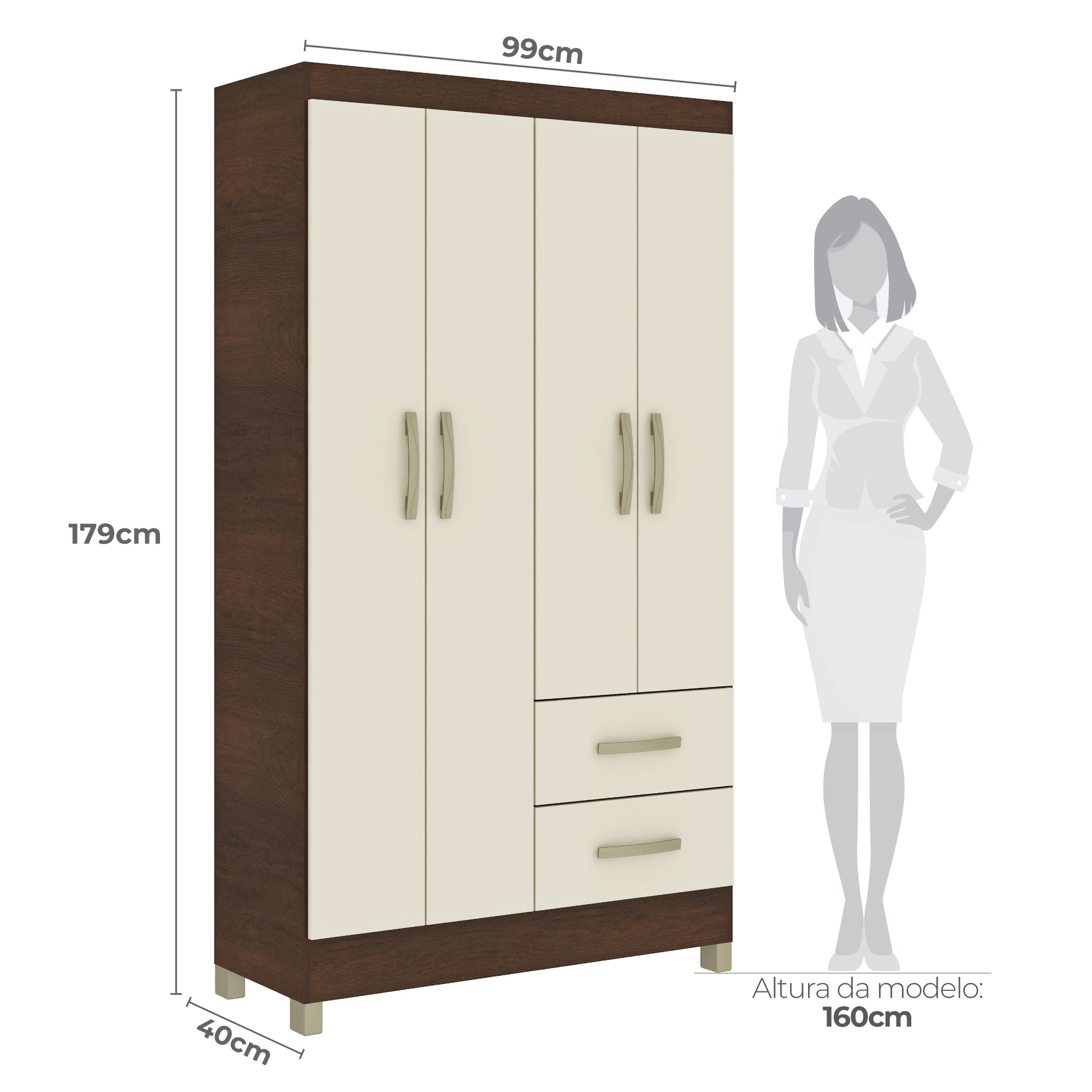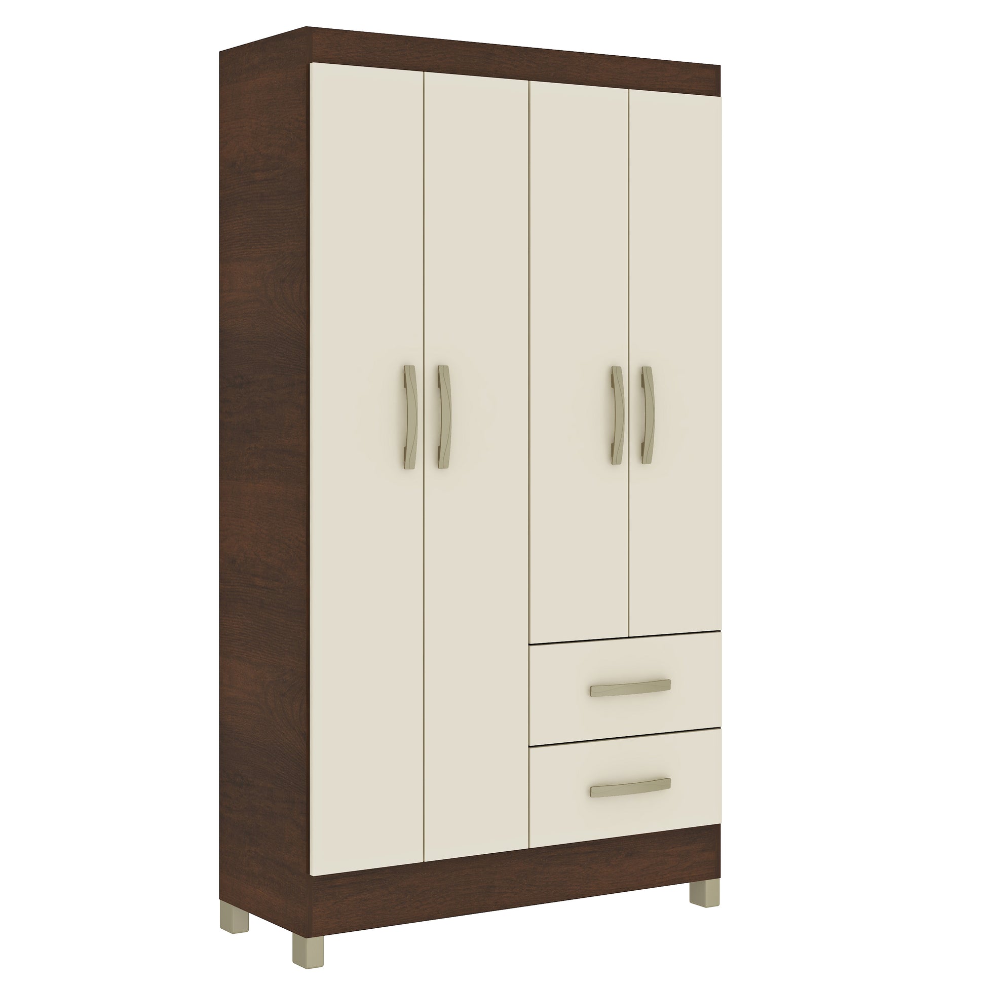 Funcional y decorativo closet de colores rústico y champagne. Cuenta con 4 puertas y 2 cajones. Aprovecha los nichos que hay en su interior para mantener tus pertenencias ordenadas.