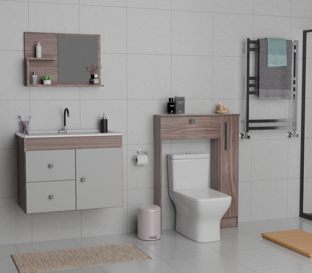 Combo Baño Mueble 1 puerta 2 cajones + Organizador WC Smoke