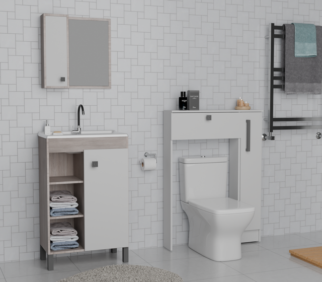 Combo Baño mueble 1 puerta 3 nichos + Organizador WC Blanco